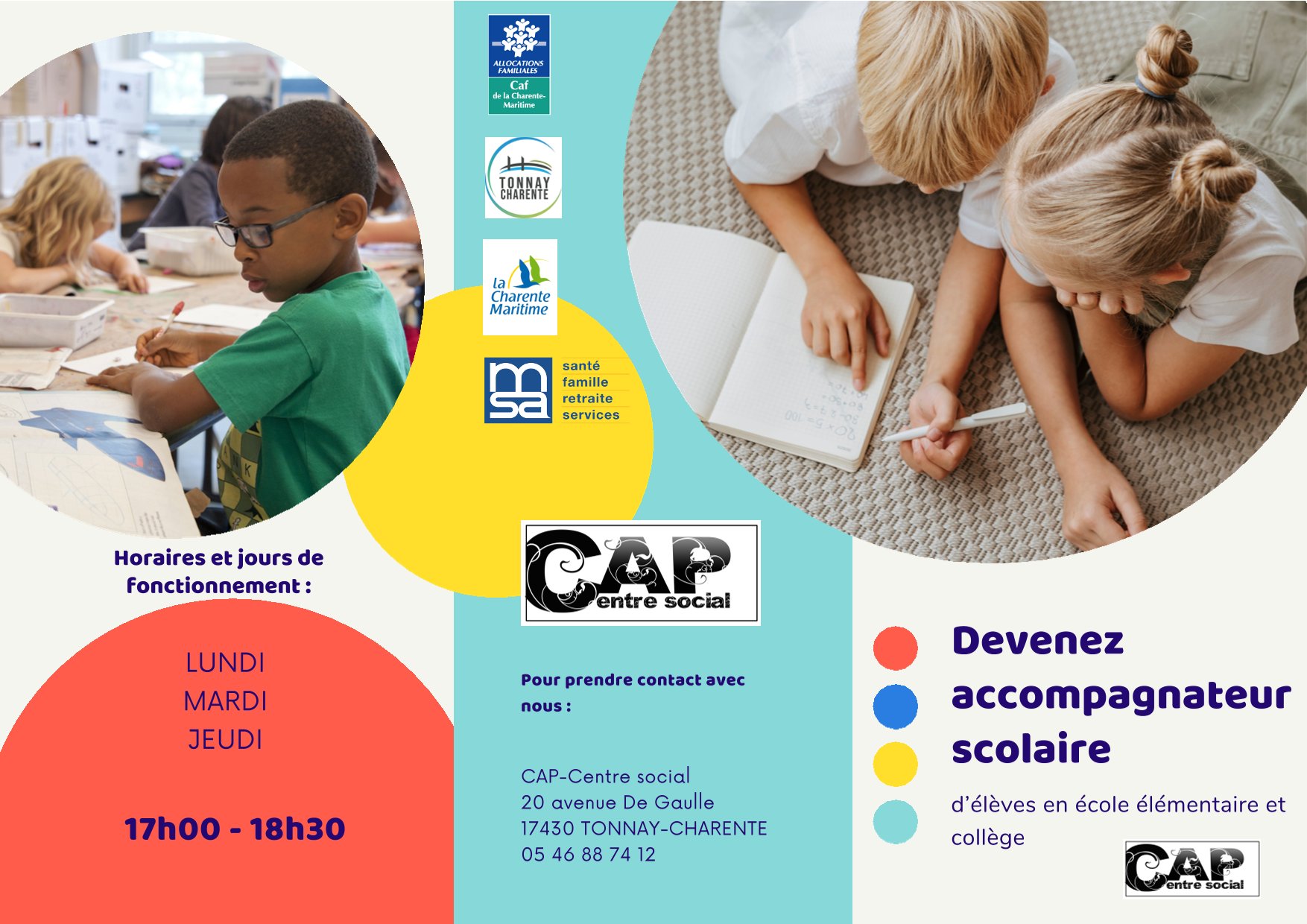 L'accueil de Loisirs du CAP centre social propose aux enfants des écoles élémentaires de Tonnay-Charente (Plaisance et Sainte-Anne), un accueil après l’école.