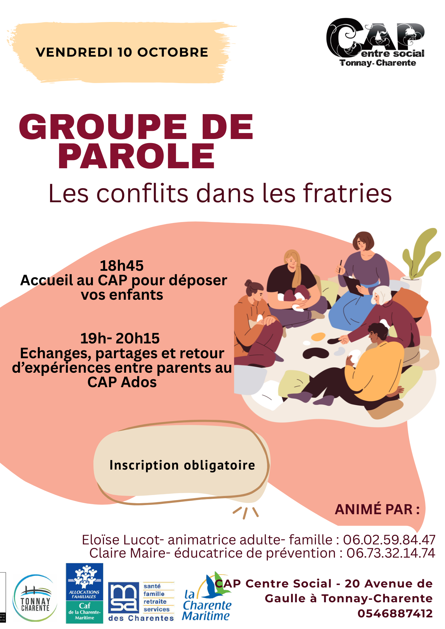 L'accueil de loisirs 3 - 5 ans est ouvert tous les mercredis, petites et grandes vacances Accueil à partir de 7 h 30 et jusqu'à 18 h 30, à la journée ou à la demi-journée pendant les vacances scolaires. Des activités et de espaces d'accueil adaptés au rythme et à l'âge des enfants. Des jeux, du bricolage, de la musique, de la cuisine, du sport, des ateliers manuels, des sorties, des activités d'expression. De 2 € à 18 € par jour selon les ressources de la famille et selon la commune d'habitation. L'adhésion au centre social est nécessaire pour bénéficier des tarifs suivant le quotient familial. Le règlement des journées se fait à la réservation par période de mercredis ou de vacances. Contacts :